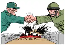 حصار غزة هو حصار خانق قامت إسرائيل بفرضه على قطاع غزة إثر نجاح حركة المقاومة الإسلامية حماس في الانتخابات التشريعية في 2006 قبل دخول حماس غزة بعام، ثم عززت إسرائيل الحصار في 2007 بعد سيطرة حماس على غزة في حزيران 2007.[1] يشتمل الحصار على منع أو تقنين دخول المحروقات والكهرباء والكثير من السلع، من بينها الخل والبسكويت والدواجن واللحوم ومنع الصيد في عمق البحر، وغلق المعابر بين القطاع وإسرائيل. ويرى بعض المفكرين أن مصر تشارك في الحصار بشكل غير رسمي،[2][3] حيث أغلقت معبر رفح المنفذ الوحيد للقطاع إلى العالم الخارجي من جانب مصر. وعلي إثر هذا الحصار قام الآلاف من الفلسطينيين في 23 يناير، 2008 باقتحام الحدود على الجانب المصري والدخول للتزود بالمواد الغذائية من مصر بعد نفاذها من القطاع،[4] عبر في هذا الاقتحام ما يقرب من 750 ألف فلسطيني، وقد صرح الرئيس المصري حسني مبارك للصحفيين لدى افتتاحه معرض الكتاب السنوي في القاهرة : "أمرت قوات الأمن بالسماح للفلسطينيين بالعبور لشراء حاجاتهم الأساسية والعودة إلى غزة طالما أنهم لا يحملون أسلحة أو أي محظورات".[5] قامت إسرائيل بعد حادثة الاعتداء على أسطول الحرية الذي كان يستهدف كسر الحصار كما أعلن الناشطون على متنه بتخفيف الحظر المفروض على دخول بعض السلع الغذائية وأدوات المطبخ ولعب الأطفال،[6][7] بينما رفضت حركة حماس القرار واعتبرته دعائياً وغير عملي.[8]