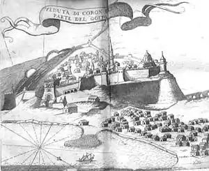 في عام 1532م، أمر إمبراطور هابسبورغ شارل الخامس (شارلكان) الأميرال الجنوي أندريا دوريا بالهجوم عليها كجزء من تحول عمليات الحرب العثمانية/الهابسبورغية في المجر (1526-1568م).[1]