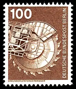طابع بريد : عجلة مجرفة لاستخراج الفحم ،ألمانيا.