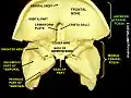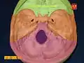 ![]() السطح العلوي لقاعدة الجمجمة. توجد حفرة القحف الأمامية أعلى التجاويف الثلاثة. | |