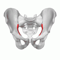 الخط المقوس للعظم الحرقفي (arcuate line) مبيّن باللون الأحمر.