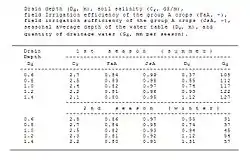 ويناقش تصميم تحسين الصرف وتطوير معايير الصرف في بحث موسع عن الصرف. ويبين الشكل 4 مثالا لتأثير عمق الصرف على ملوحة التربة بمعايير الري والصرف المتنوعة المحاكاة بواسطة برنامج سولتمود.[3]
