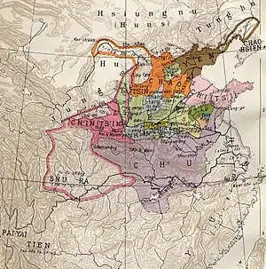 بعد إخراج زو من وادي نهر وي عام 771 قبل الميلاد ألقي على عاتق مملكة تشين مهمة استرداد حكم زو في الوادي. الأمر الذي قاموا بتنفيذه عن طريق استيعاب قبائل رونغ (Rong) المحلية ببطء. ويتميز الوادي بأنه محاط من الجنوب بسلسة جبال شاهقة ومن الشمال ببلاد جافة. ولكن من أكبر مميزاته موقعه في الغرب الأقصى في "بين الطرق" والتي قد تُبقي تشين بعيدة عن حروب لا طائل من ورائها مع الممالك الأخرى.