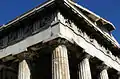 The entablature of the Hephaisteion (temple of Hephaistos) in Athens, showing Doric frieze with sculpted metopes.