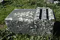 A metope (L) and triglyph (R) cut from one block from Stratos.