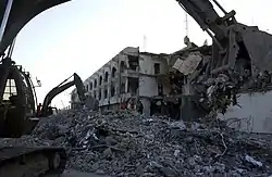 - تفجير مقر الأمم المتحدة في بغداد في أغسطس 2003 وقتل فيها ممثل كبير للأمم المتحدة في العراق، و 55 عامًا فييرا دي ميلو البرازيلي الذي كان أيضًا مفوض الأمم المتحدة السامي لحقوق الإنسان.[2] موظفي الأمم المتحدة 22 عضوا كانت قتل وجرح أكثر من 100 في الإنفجار. وكان من بين القتلى أيضا نادية يونس، المدير التنفيذي السابق في منظمة الصحة العالمية (WHO) المسؤول عن العلاقات الخارجية والأجهزة الرياسية. وقد أدان الهجوم الإرهابي من قبل الأمين العام للأمم المتحدة كوفي أنان وندد مجلس الأمن للأمم المتحدة.[3]