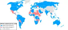 السماح بقيادة الصم في جميع أنحاء العالم [1] أزرق: بلاد تسمح للصم بالحصول على رخصة قيادة، أحمر: بلاد تمنع، رمادي: لا معلومات متاحة