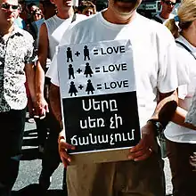|CitationClass=تم تجاهله (مساعدة) - "Armenian Bill On Gay 'Propaganda' Ban Withdrawn". «Ազատ Եվրոպա/Ազատություն» ռադիոկայան. مؤرشف من الأصل في 07 مارس 2016. اطلع عليه بتاريخ 23 أغسطس 2015. الوسيط
