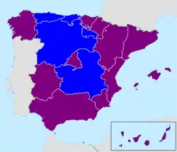 - في أندلوسيا، أراغون، جزر البليار، إقليم الباسك، جزر الكناري، كاتالونيا، إكستريمادورا، غاليسيا، مدريد، مورسيا، نافارا، وبلنسيا