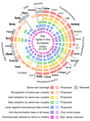 - لمزيد من المعلومات انظر: حقوق المثليين في أوروبا#التشريع حسب البلد أو الإقليم