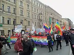 |CitationClass=تم تجاهله (مساعدة) - "Gay rights protest in St. Petersburg ends in clashes, arrests". Reuters. 12 October 2013. مؤرشف من الأصل في 17 نوفمبر 2015. اطلع عليه بتاريخ 13 أكتوبر 2013. الوسيط