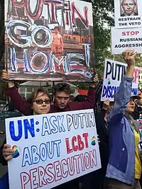 |CitationClass=تم تجاهله (مساعدة) - Smith-Spark, Laura; Black, Phil (4 August 2013). "Protests, boycott calls as anger grows over Russia anti-gay propaganda laws". CNN. مؤرشف من الأصل في 15 فبراير 2019. الوسيط