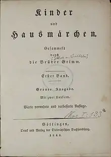 | (بالألمانية: Kinder- und Hausmärchen) | |