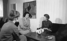 ![]() حكمت أبو زيد (يسار)، مع وزيرة الصحة الألمانية إليزابيث شفاتهاوبت، عام 1963. | |