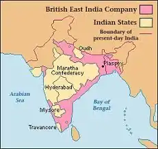 قُسِّمت المنطقة التي تغطيها الهند الحديثة بشكل كبير في أعقاب انهيار إمبراطورية المغول في النصف الأول من القرن الثامن عشر.[13]