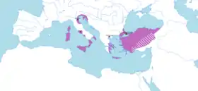 | صوليدوس مع صورة ليونتيوس (حوالي 695–698) (أنظر Byzantine insignia)العلم |