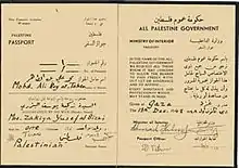 وقد انتهت الحرب العربية الإسرائيلية عام 1948 باتفاق الهدنة بين إسرائيل ومصر المؤرخ 24 فبراير 1949، والذي حدد حدود قطاع غزة.[16] لم تكن حكومة فلسطين طرفا في الاتفاق ولم تشارك في مفاوضاتها. وقطاع غزة هو المنطقة الوحيدة في إقليم الانتداب البريطاني السابق الذي كان تحت السيطرة الإسمية لحكومة عموم فلسطين. أما بقية إقليم الانتداب البريطاني فقد أصبح إما جزءا من إسرائيل أو الضفة الغربية، التي ضمها شرق الأردن (وهي الخطوة التي لم يتم الاعتراف بها دوليا). وفي الواقع، فإن قطاع غزة يخضع للإدارة المصرية، على الرغم من أن مصر لم تطالب قط بأي أراض فلسطينية أو ضمتها إليها. ولم تقدم مصر جنسية الفلسطينيين. وقد أصدر الفلسطينيون الذين يعيشون في قطاع غزة ومصر جوازات سفر لكل فلسطين، ولم يسمح لهم بالدخول بحرية إلى مصر. إلا أن هذه الجوازات لم تعترف بها سوى ست دول عربية. وتوقفت جوازات السفر عن إصدارها عندما تم حل الحكومة الفلسطينية كافة، على الرغم من أن بعض البلدان ظلت تعترف بها لبعض الوقت.