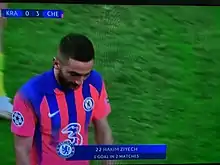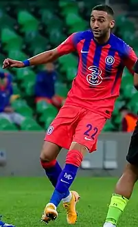 حكيم زياش (مواليد 19 مارس 1993) هو لاعب كرة قدم مغربي يلعب في مركز الوسط المهاجم مع نادي تشيلسي في الدوري الإنجليزي الممتاز ومنتخب المغرب لكرة القدم.[3] يشتهر بالإنهاء والمراوغة والسرعة، كما يعرف بقدرته التكتيكية وتميزه بالركلات الثابتة.[4][5]