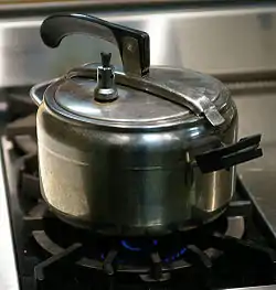 حلّة الضغط هي وعاء غير مُنفِذ للهواء لطهي الطعام تحت ضغط، وهي لا تسمح بهروب السوائل الموضوعة داخله .[1][2][3] ولأن نقطة الغليان للماء تزداد عندما تكون تحت ضغط، يسمح الضغط الواقع داخل الحلة للسوائل الموجودة داخل الوعاء بارتفاع درجة حرارتها لتصل لدرجة حرارة أعلى قبل أن تغلي.