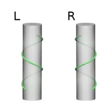 حلزونية في فيزياء الجسيمات هي إسقاط اللف المغزلي على اتجاه العزم، :