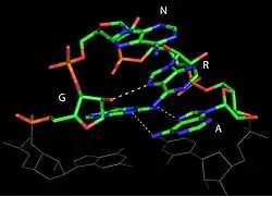 |CitationClass=تم تجاهله (مساعدة) - Klosterman, PS; Hendrix, DK; Tamura, M; Holbrook, SR; Brenner, SE (2004). "Three-dimensional motifs from the SCOR, structural classification of RNA database: extruded strands, base triples, tetraloops and U-turns". Nucleic Acids Research. 32 (8): 2342–52. doi:10.1093/nar/gkh537. PMC 419439. PMID 15121895. الوسيط
