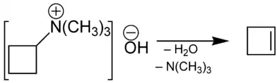 يمكن الحصول على مركب حلقي البوتين بإجراء عملية تقطير جاف لمركب هيدروكسيد حلقي بوتيل ثلاثي ميثيل الأمونيوم، وذلك حسب تفاعل خسف هوفمان [4]
