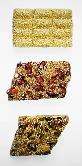 ![]() ثلاثة أصناف من حلوى بذور السمسم. | |