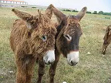- حمار البواتو Poitou الذي خرج في فرنسا، كهدف وحيد لإنتاج البغال، حمار عريض مع وبر خشن.
