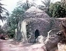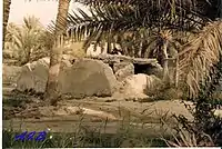 ![]() صورة خارجية لحمام أبو لوزة قديماً، وتظهر غابات النخيل تٌحيط من حوله. تاريخ التصوير غير معروف. | |
