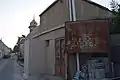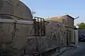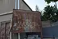 أحد ملاحق الحمّام إلى جانب لوحة إرشادية بهتت كتابتها.
