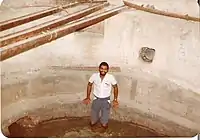 منبع ماء الحمّام كما تظهر في تمّوز/يوليو، 2017م. وتتضح على أطراف المنبع تدرّجات كانت تُستعمل للاتكاء والجلوس عليها.