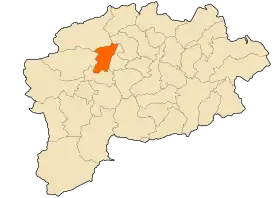 تبعد عن مقر الولاية ب 20 كم، تحدها شمالا الركنية والفجوج، وجنوبا بلدية هواري بومدين، وتحدها شرقا مجاز عمار، وغربا بوحمدان.