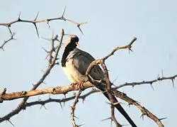 الذكر: يلاحظ بوضوح اللون الأسود على وجه وصدره ما يجعل التعرف عليه سهلاً. لاحظ أيضاً لون المنقار البرتقالي. كثيراً ما يشاهد هذا الطائر وهو حاط على الأرض ويكون في شكل جماعات صغيرة.