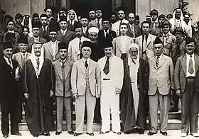 ![]() مشاركين في مؤتمر بلودان الأول 1937، حمد صعب في الصف الأول من اليمين إلى اليسار. | |