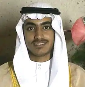 |CitationClass=تم تجاهله (مساعدة) - "Rewards for Justice - Reward Offer for Information on al-Qa'ida Key Leader Hamza bin Laden". DOS Rewards for Justice Program. 28 February 2019. مؤرشف من الأصل في 14 أبريل 2019. الوسيط