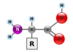 الحمض الأميني هو أحد مركبات عضوية تحمل نوعين من الجذور الكيميائية، وهي طرف قاعدي أميني (نشادري) [2] وطرف حمضي كربوكسيل متحدتين مع ذرة كربون مرتبطة بدورها ببقية عضوية جانبية Side chain تكون مختلفة من حمض أميني إلى آخر. تعتبر الأحماض الأمينية وحدات التركيب الأساسي للبروتينات في الكائنات الحية، فهي تكون العضلات والأنسجة والأعضاء والجلد، وتدخل في تركيب الهرمونات والإنزيمات، وكذلك في تركيب خلايا المناعة.