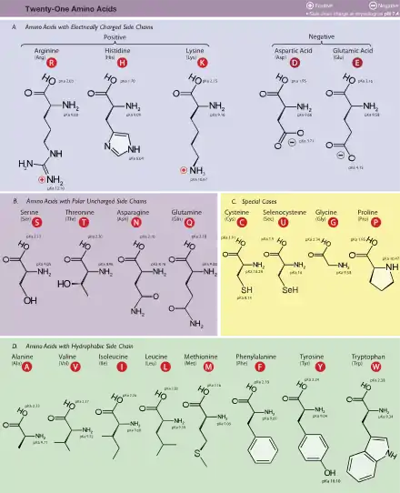 أنظر إلى المقال المفصل التالي قائمة الأحماض الأمينية
