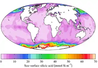 - Treguer, P., Nelson, D. M., Van Bennekom, A. J., DeMaster, D. J., Leynaert, A. and Queguiner, B. (1995). The silica balance in the world ocean: A reestimate. Science 268, 375-379. نسخة محفوظة 30 سبتمبر 2009 على موقع واي باك مشين.