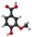 ![]() Ball-and-stick model of the vanillic acid molecule |