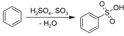يتفاعل حمض الكبريتيك المركز مع الكثير من المركبات العضوية العطرية حيث تستبدل ذرة من ذرات الهيدروجين بها بمجموعة حمض السلفونيك، ولهذا التفاعل أهمية كبيرة في تحضير الكثير من المركبات كالفينول والسكارين، فيتفاعل مثلاً مع البنزين مكوناً حمض البنزين سلفونيك.