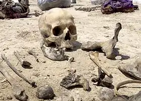 ![]() رفات إنسان عثر عليه في مقبرة جماعية في كردستان العراق، بتاريخ 15 يوليو 2005 | ||||