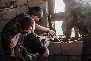 - Most leftist foreign volunteers fight as part of the YPG,[11] though some have also formed an independent unit, the وحدات حماية الشعب الدولية,[12] or joined the تابور الحرية العالمي. The latter is a larger unit, mostly composed of Kurdish and Turkish communists.[13]