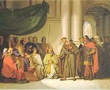 |CitationClass=تم تجاهله (مساعدة); تحقق من التاريخ في:|سنة=(مساعدة) - الشارتري، ڤوشيه; ترجمة: د. زياد العسلي (1990). تاريخ الحملة إلى القُدُس 1095 - 1127 (PDF). عمَّان - الأُردُن: دار الشُرُوق لِلنشر والتوزيع. صفحة 37. الوسيط