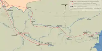 عَبَر العاهل الشاب الملك ڤلاديسلاڤ الثالث مع جيش قوامه 40,000 رجل معظمهم من المجريين بقيادة يوحنا هونيادي، وتجاوزوا نهر الدانوب واستولوا على مدينتي: نيش وصوفيا. [9]