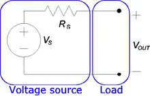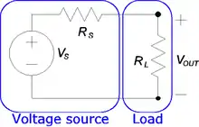 وهذا التحليل يتغير عند إضافة الحمل الكهربى فعند اضافته سيتجزأ الجهد الكهربى على المعاوقتين المكافئتين الأولى هي المعاوقة المكافئة للدائرة وتسمى أيضا بمعاوقة الخرج أو والثانية هي المعاوقة المكافئة للحمل أو ما يسمى بمعاوقة الدخل .