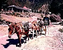 الحيوانات المستخدمة لنقل البضائع - البغال التي تحمل بلاط السقف الأردواز في الهند في عام 1993.