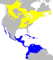 ![]() الأزرق: زائرة شتويَّة، الأصفر: مُفرخة | |