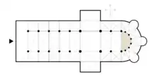 يتم فصل الحنية عن الجزء الرئيسي من الكنيسة عن طريق الكنيسة. [3]