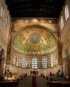 ![]() نموذج في وقت مبكر لحنية الكنيسة البيزنطية المسيحية بشكل نصف كروي نصف قبة في كنيسة القديس أبوليناريوس. | |
