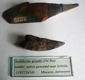 - "Scaldicetus in the Paleobiology Database". أعمال الحفريات. مؤرشف من الأصل في 17 نوفمبر 2018. اطلع عليه بتاريخ 16 نوفمبر 2018. الوسيط